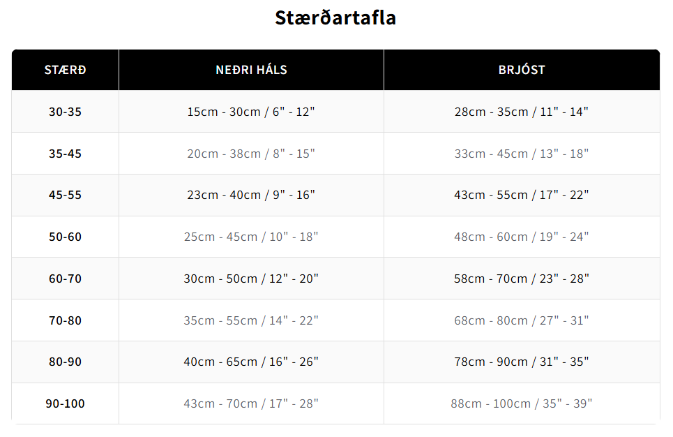 Harðgerðar smellur, stillanlegt ummál á brjósti, þægileg og vatnsheld fóðring sem gerir beislið notalegt fyrir hundinn,