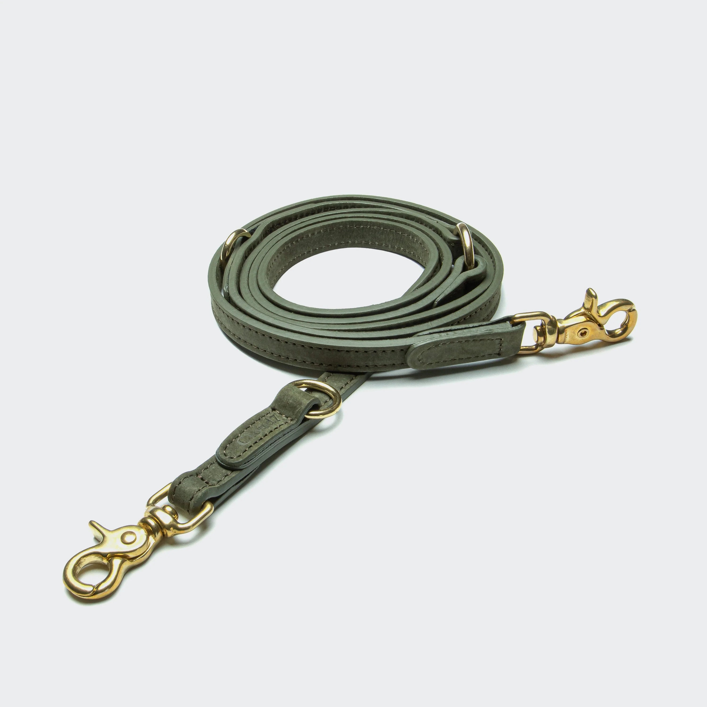 Vörulýsing Vandaður hangerður leðurtaumur úr hágæða Nubuck leðri Stillanglegur með 3 mismunandi lengdum Slitsterkur og einstaklega endingargóður Fyrir hunda sem vega 15kg eða meira Stærðir Efni Leður: Vandað nubuck leður Málmhlutar: messing