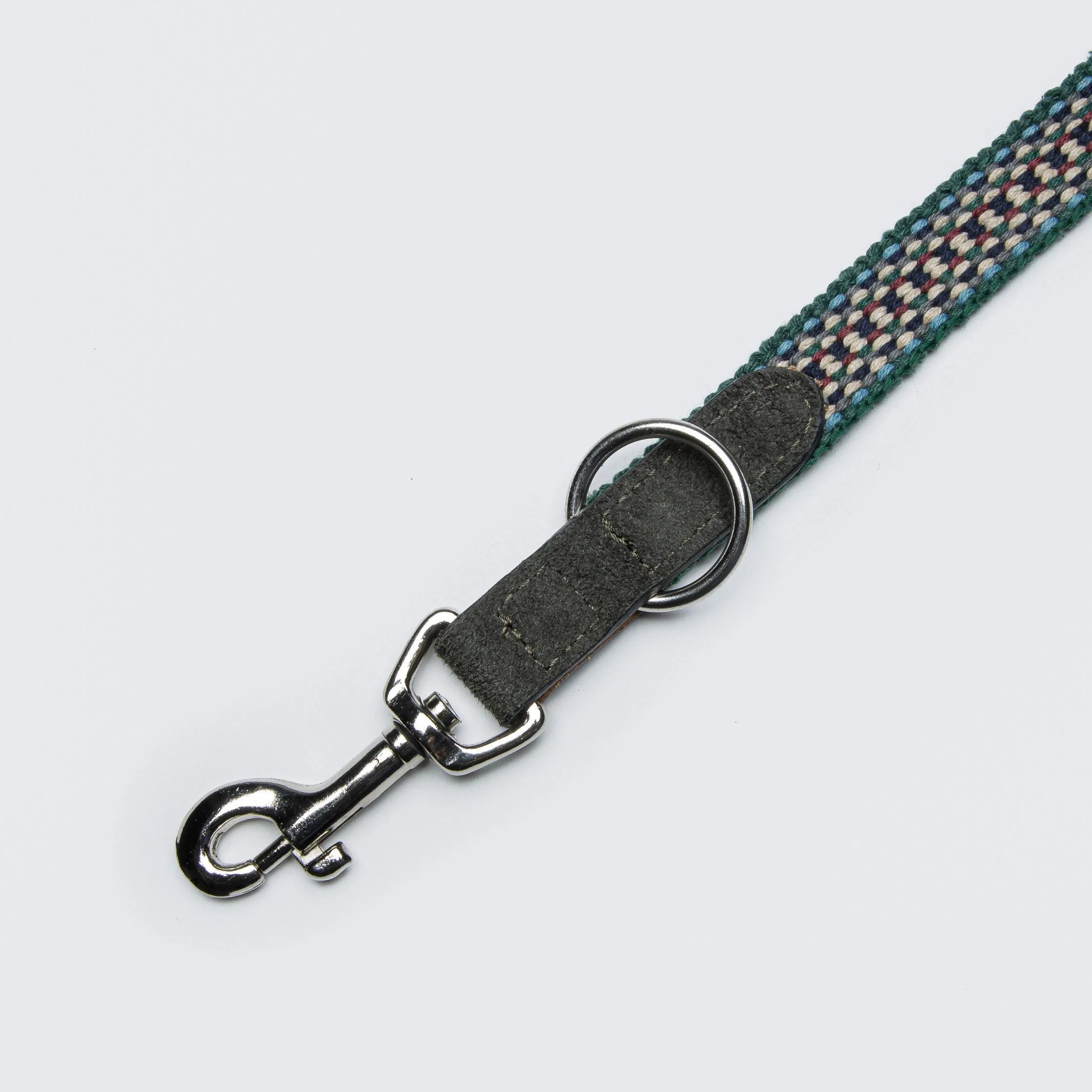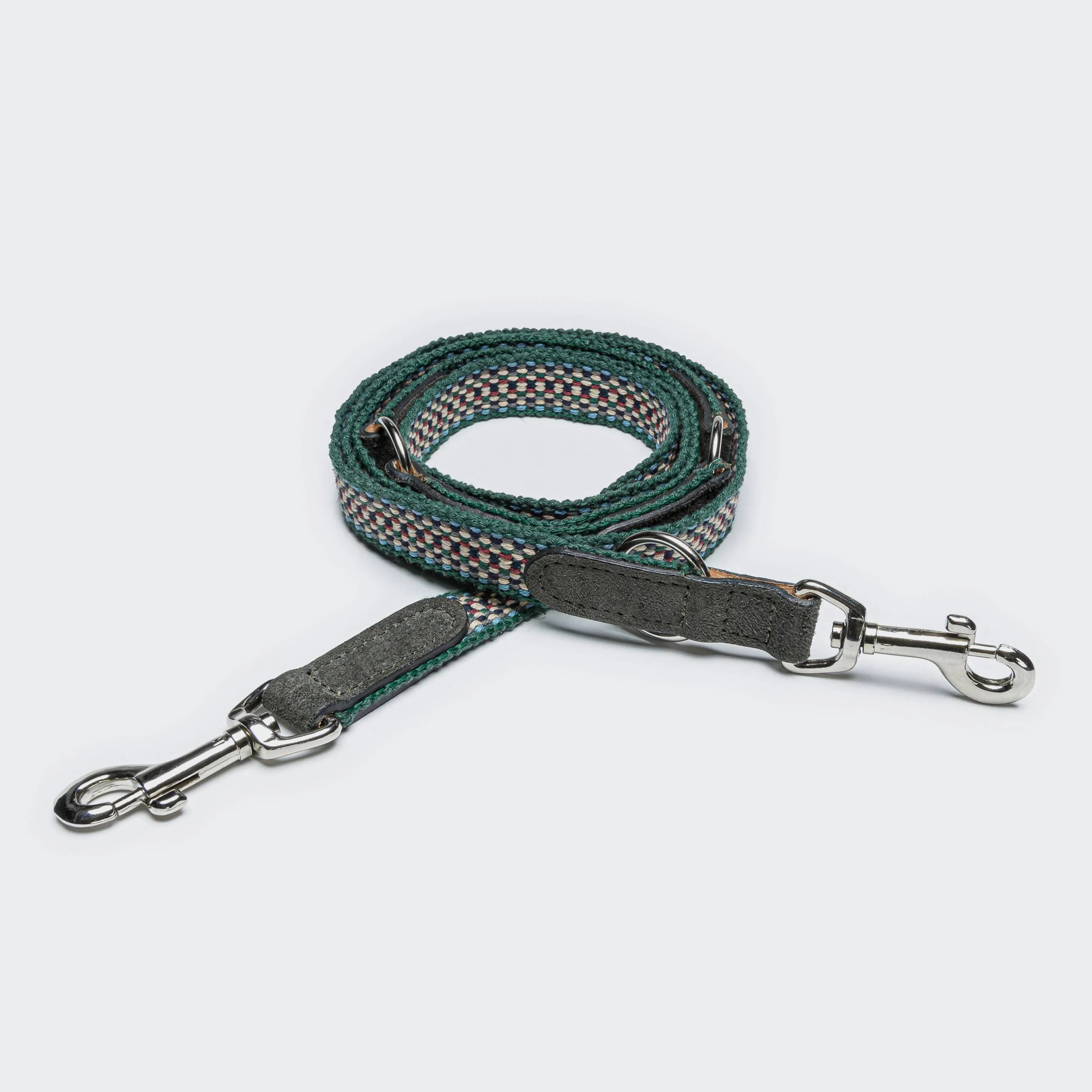 Vörulýsing Stillanlegur handgerður hundataumur úr mjúku efni Tímalaus hönnun Hægt að stilla á 3 vegu (2m) Handgert úr efni og leðri sem er silkimjúkt Ryðfrítt stál Stærðir Efni Taumur :65% bómull, 35% polyacrylic og leður
