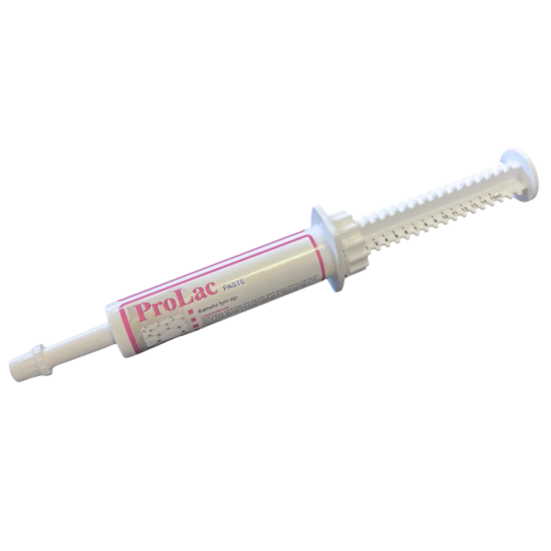 Vörulýsing Prolac Paste er þykkni til styrktar þarmaflóru húsdýra og fyrir dýr með meltingartruflanir og veikburða ungviði. Bætir meltingu og kemur jafnvægi á þarmaflóru Notist á álagstímum, t.d. flutningur, fóðurbreytingar eða til að bæta gerlaflóru meltingakerfis eftir sýklalyfjakúr Einnig hægt að nota fyrirbyggjandi Þrenns konar áhrif í einum og sama skammtinum Innihald 4,2 milljarðar baktería í hverjum ml: Lactobacillus, Pediococcus, Bacillus og Lactobacillus acidophilus, auk jurtaolíu, lesitíns og (E551B).