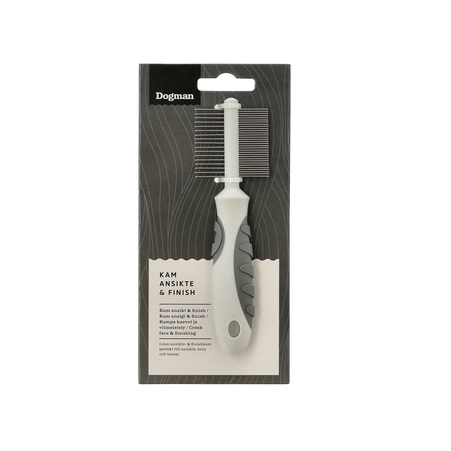 Lítil greiða sem hentar einstaklega vel fyrir andlit, eyru og loppur. Greiðan er með tvær hliðar með mismunandi þéttleika sem hentar vel þegar verið er að greiða minni svæði.