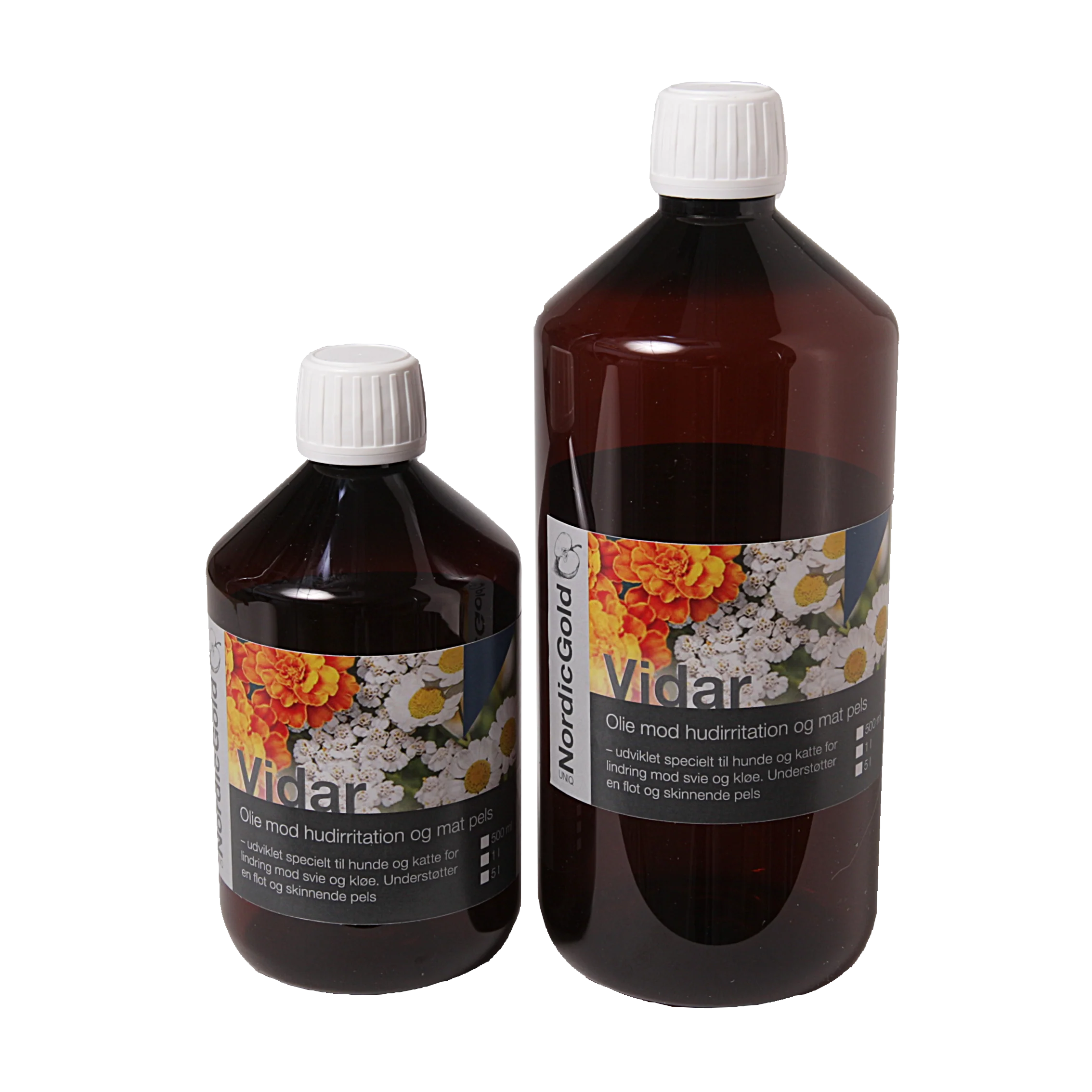 Vidar olían er sérstaklega þróuð fyrir hunda sem glíma við ertingu í húð og/eða mattan feld. Olían er samsett úr sérvöldum olíum og lífrænum jurtum sem hafa róandi áhrif á sviða og kláða í húð. Vidar inniheldur gott jafnvægi á milli omega 3 og 6 fitusýra sem stuðlar að fallegri feld. Einungis náttúruleg hráefni eru notuð í olíuna